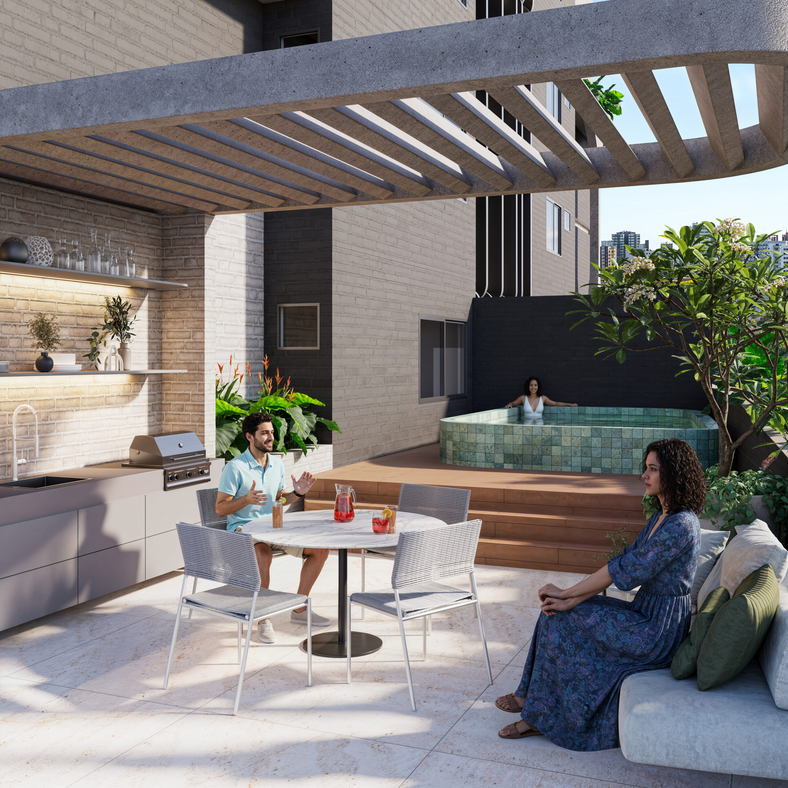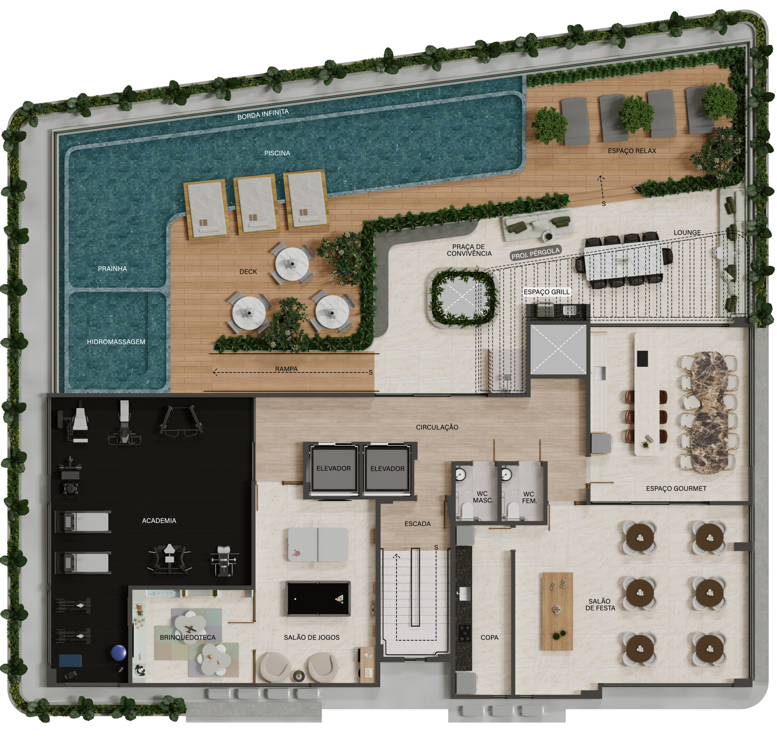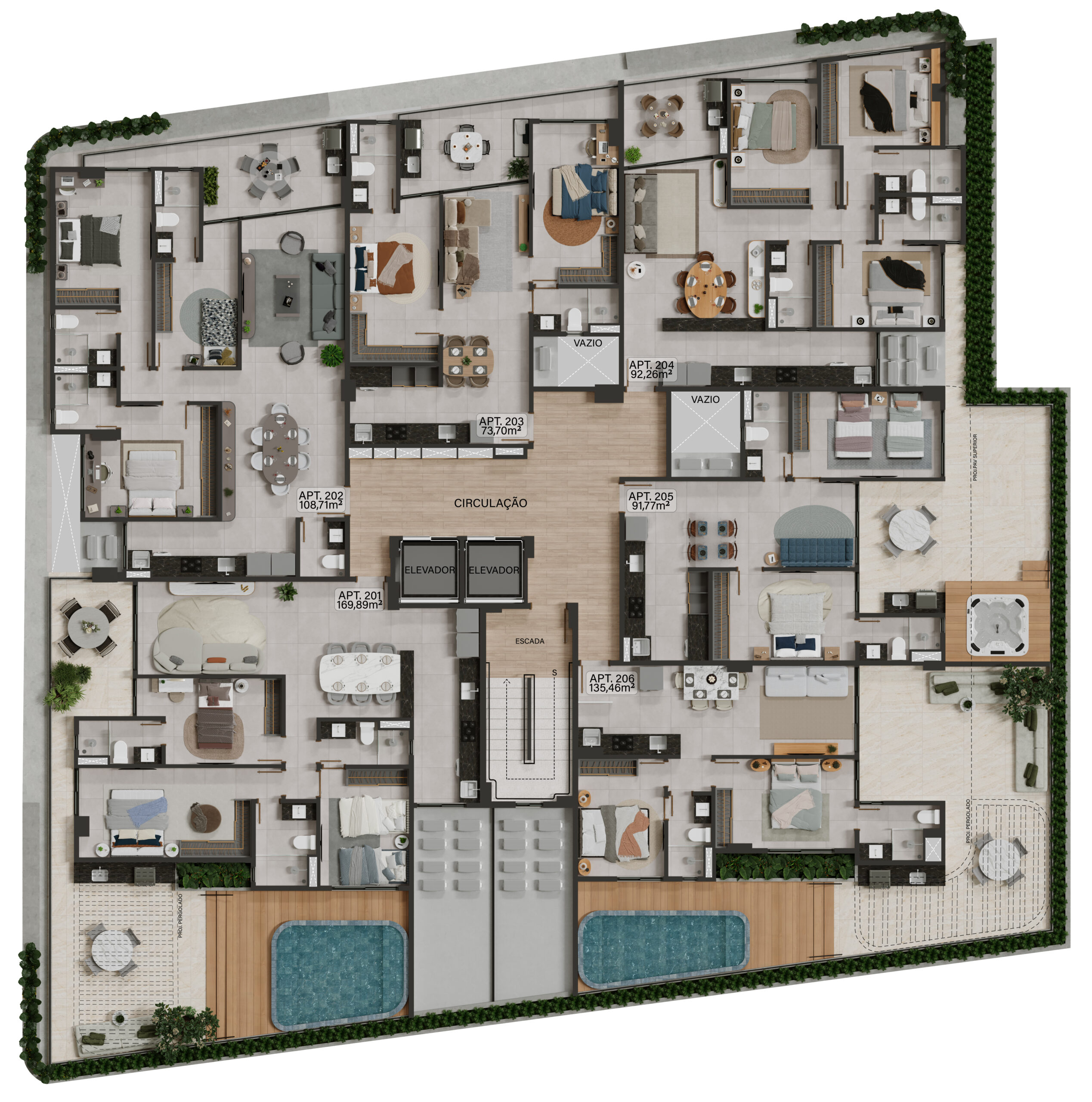 plantas generosas, varandas integradas e áreas de lazer que evocam
