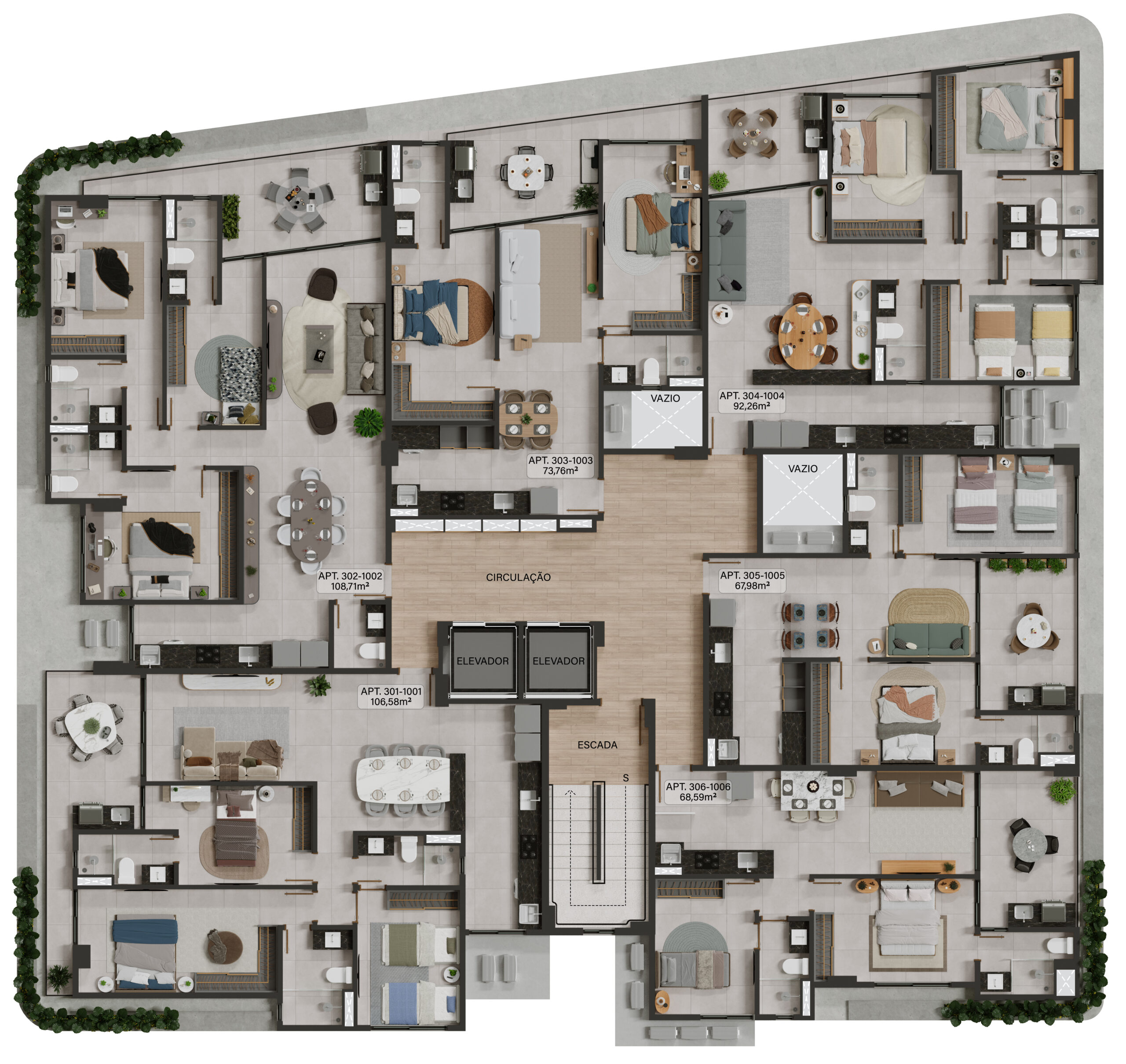Apartamento 306 a 1006: 2 Quartos 68,59m²