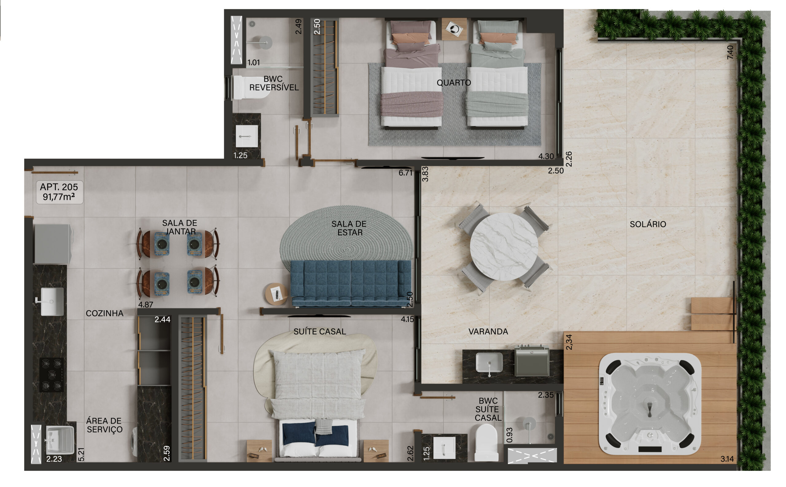 Unidade 205: 2 Quartos 91,77m²