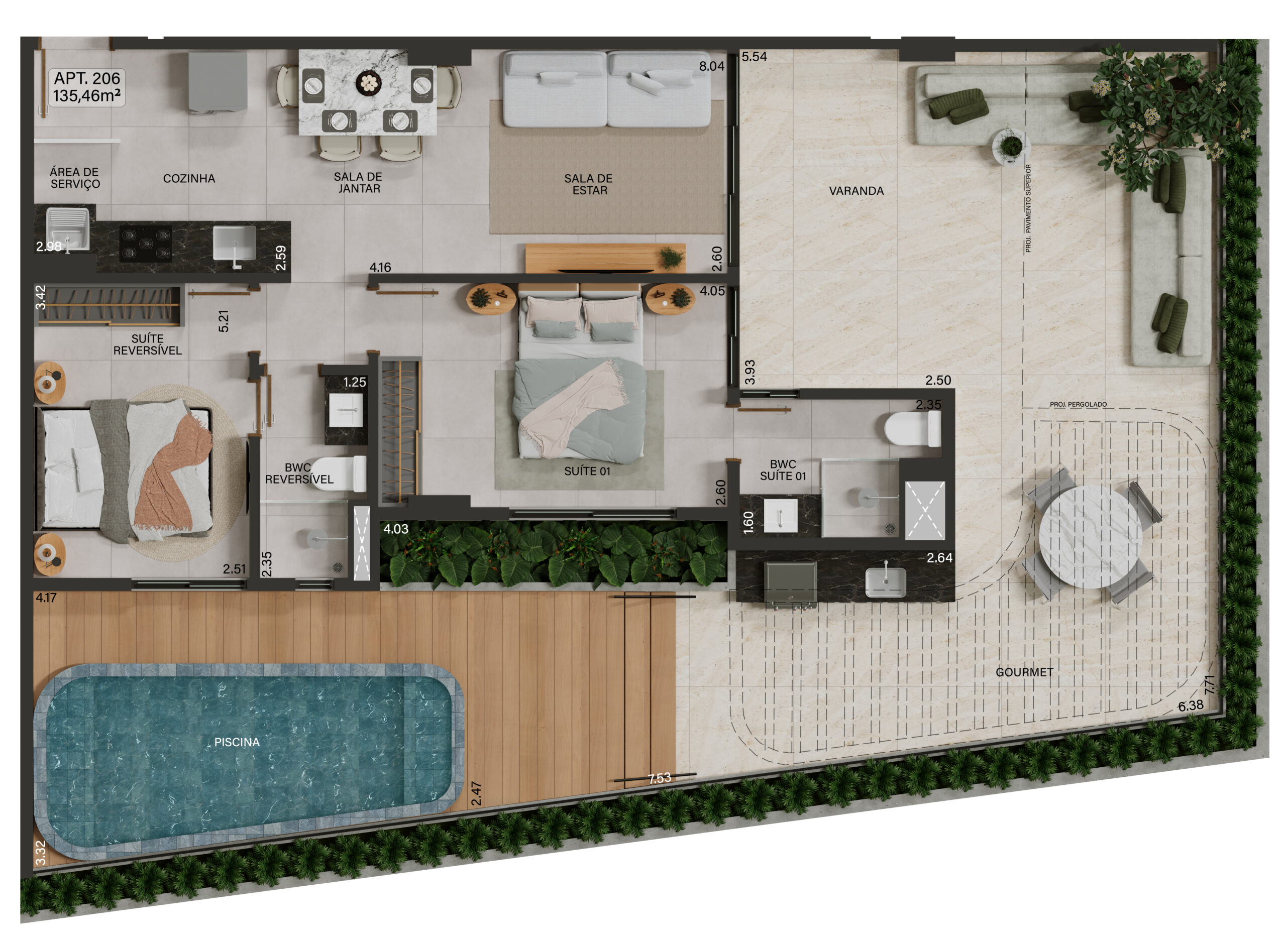 Unidade 206: 2 Quartos 135,46m²