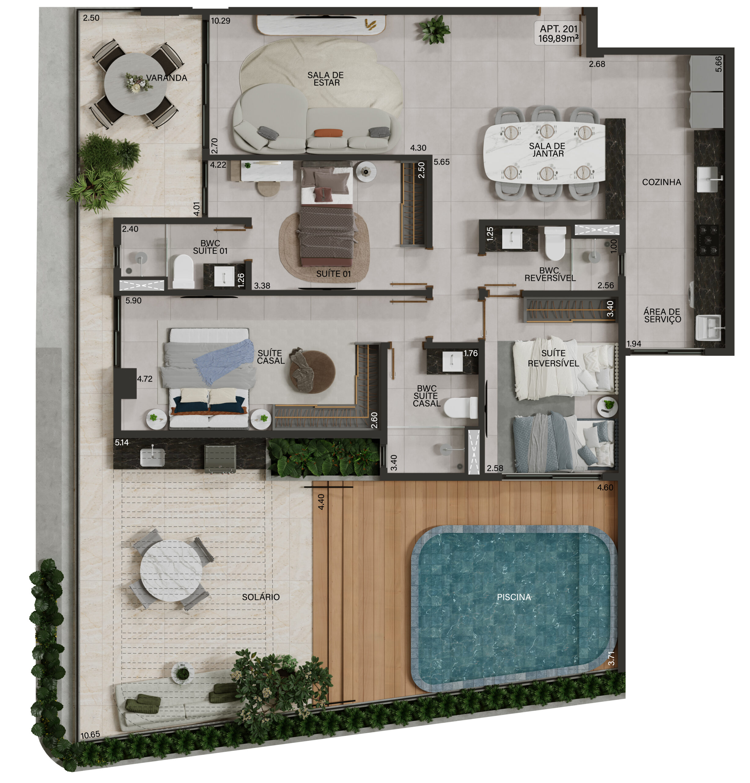 Unidade 201: 3 Quartos 169,89m²