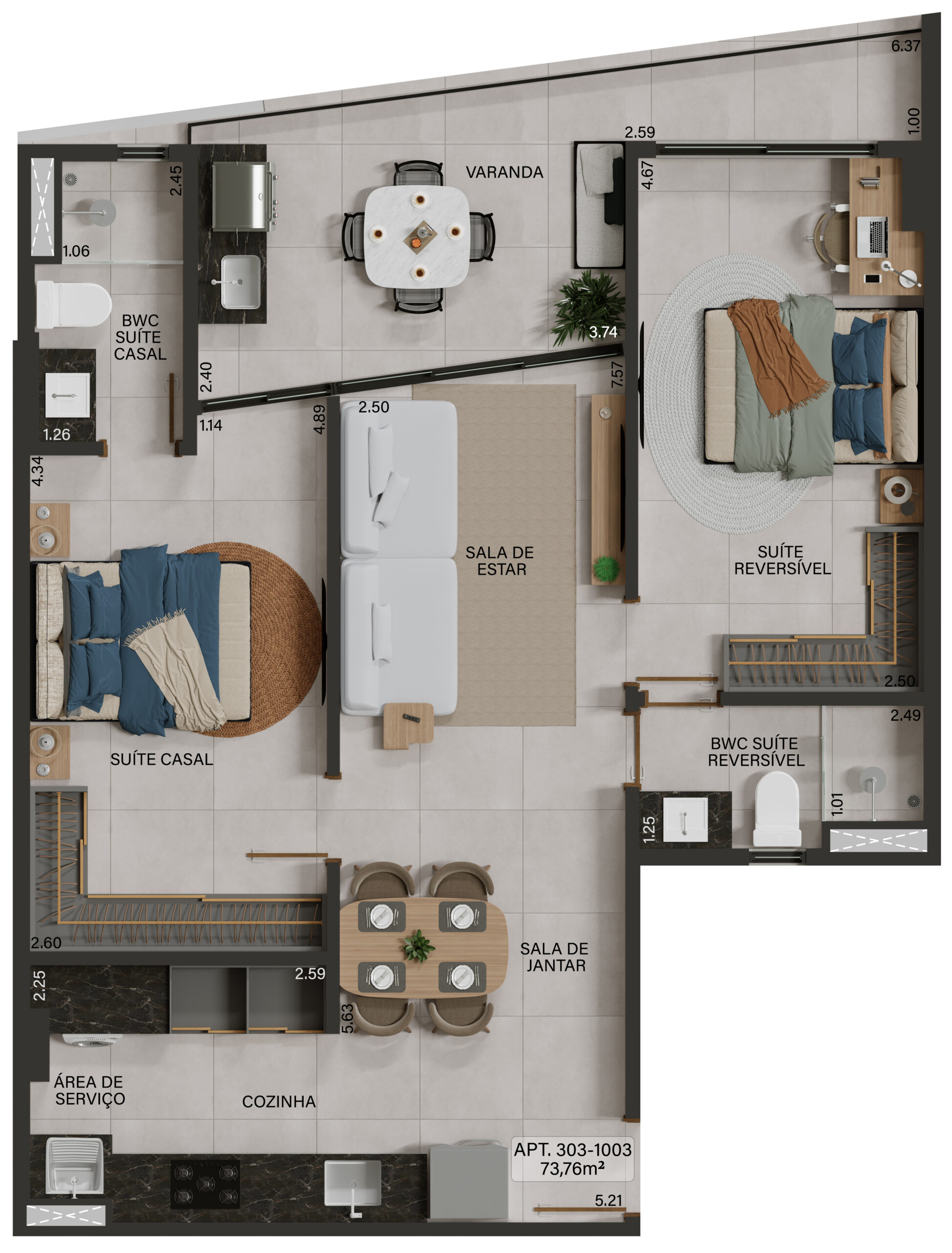 Apartamento 203 a 1003: 2 Quartos 73,76m²