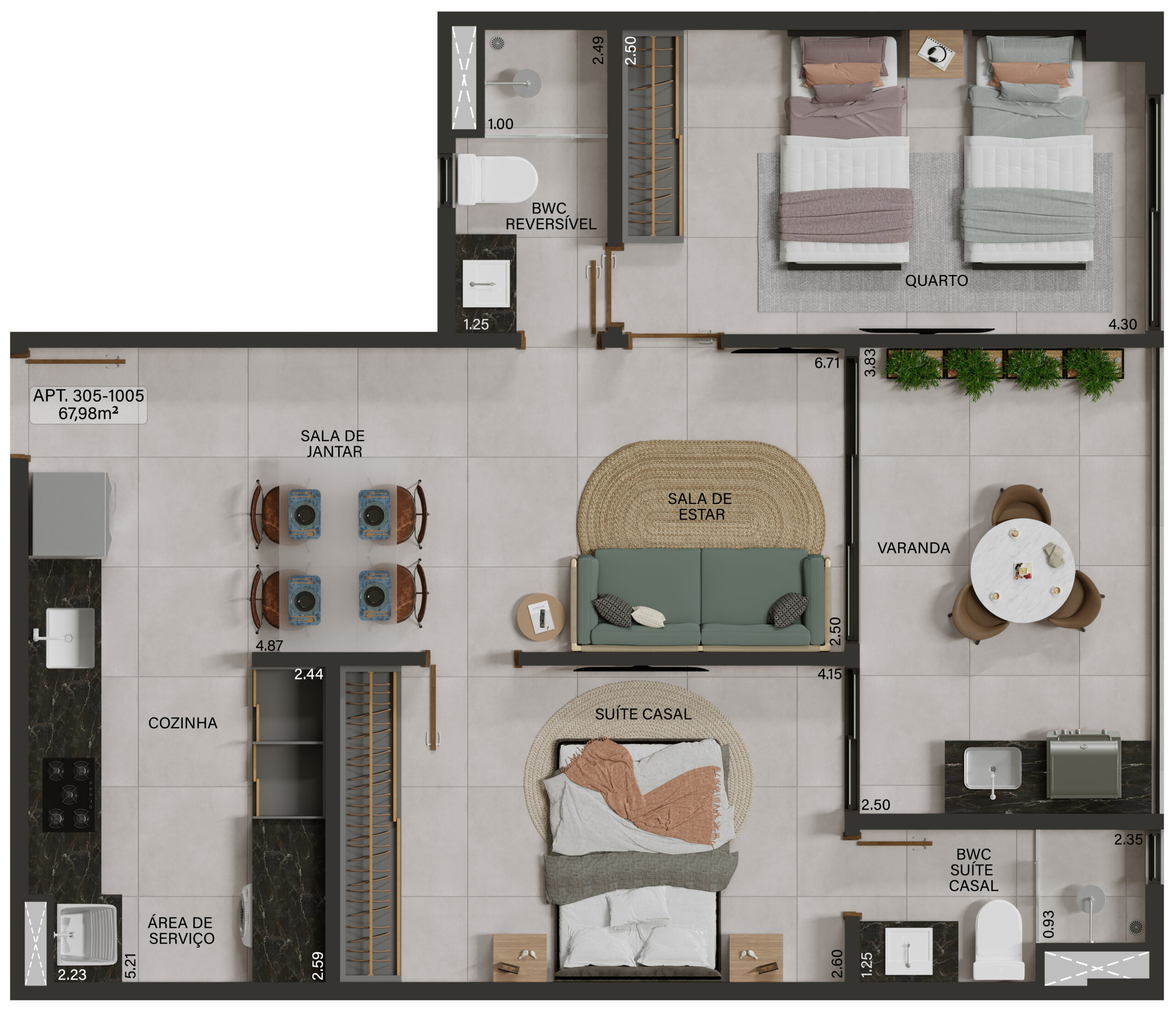 Apartamento 305 a 1005: 2 Quartos 67,98m²